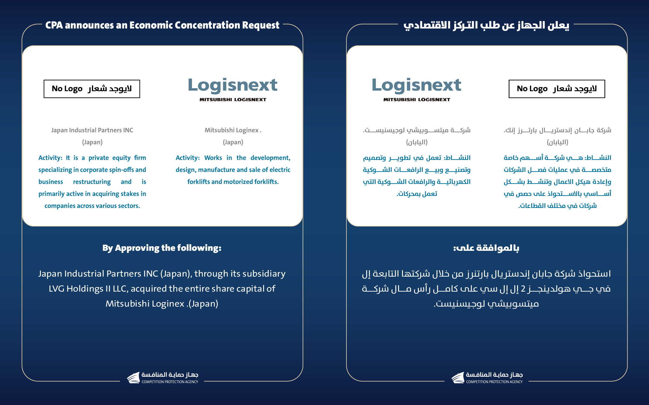تقدم شركة جابان إندستريال بارترز إنك. (اليابان) وشركة ميتسوبيشي لوجيسنيست. (اليابان) بطلب