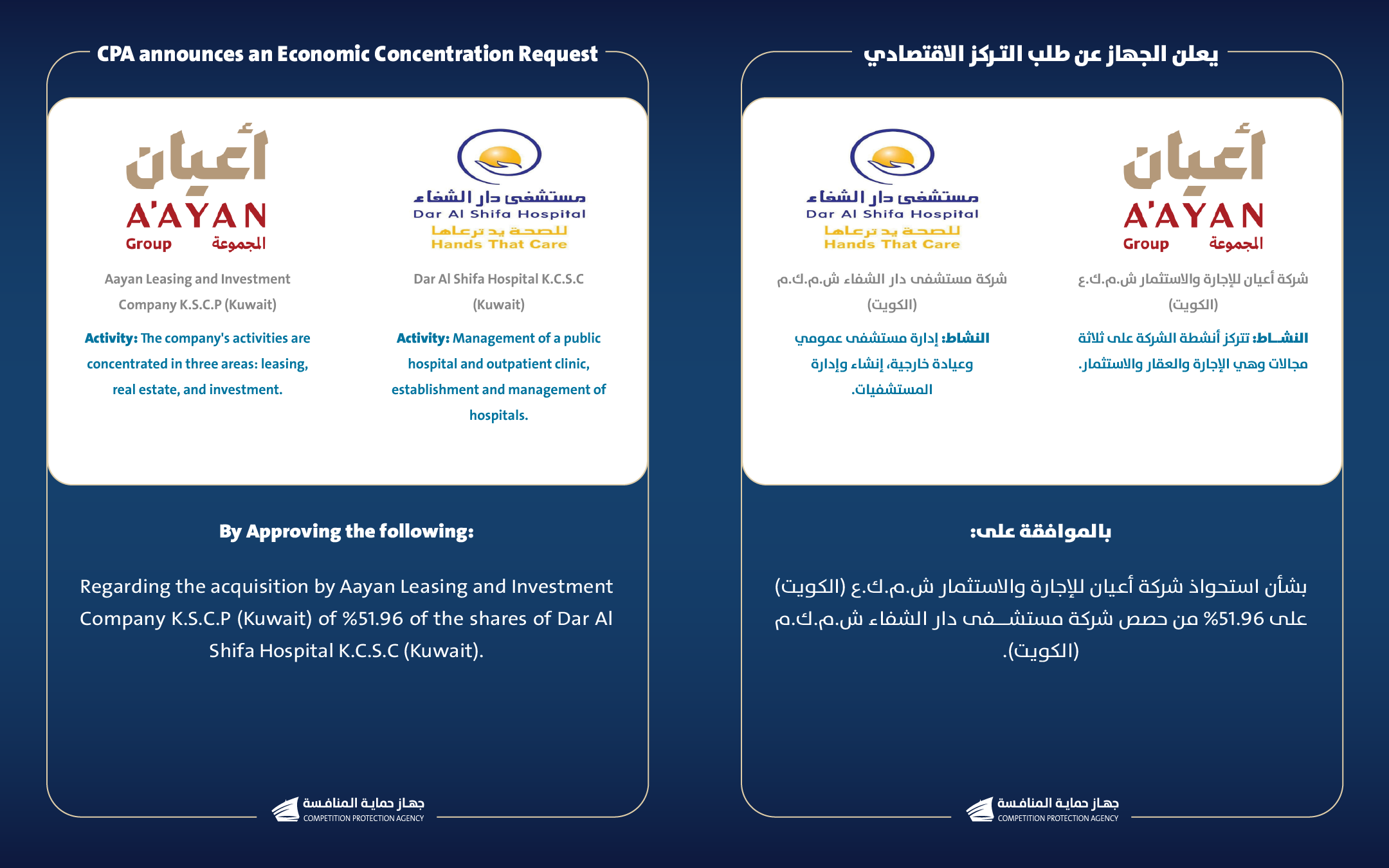 تقدم شركة أعيان للإجارة والاستثمار ش.م.ك.ع (الكويت) وشركة مستشفى دار الشفاء ش.م.ك.م (الكوي