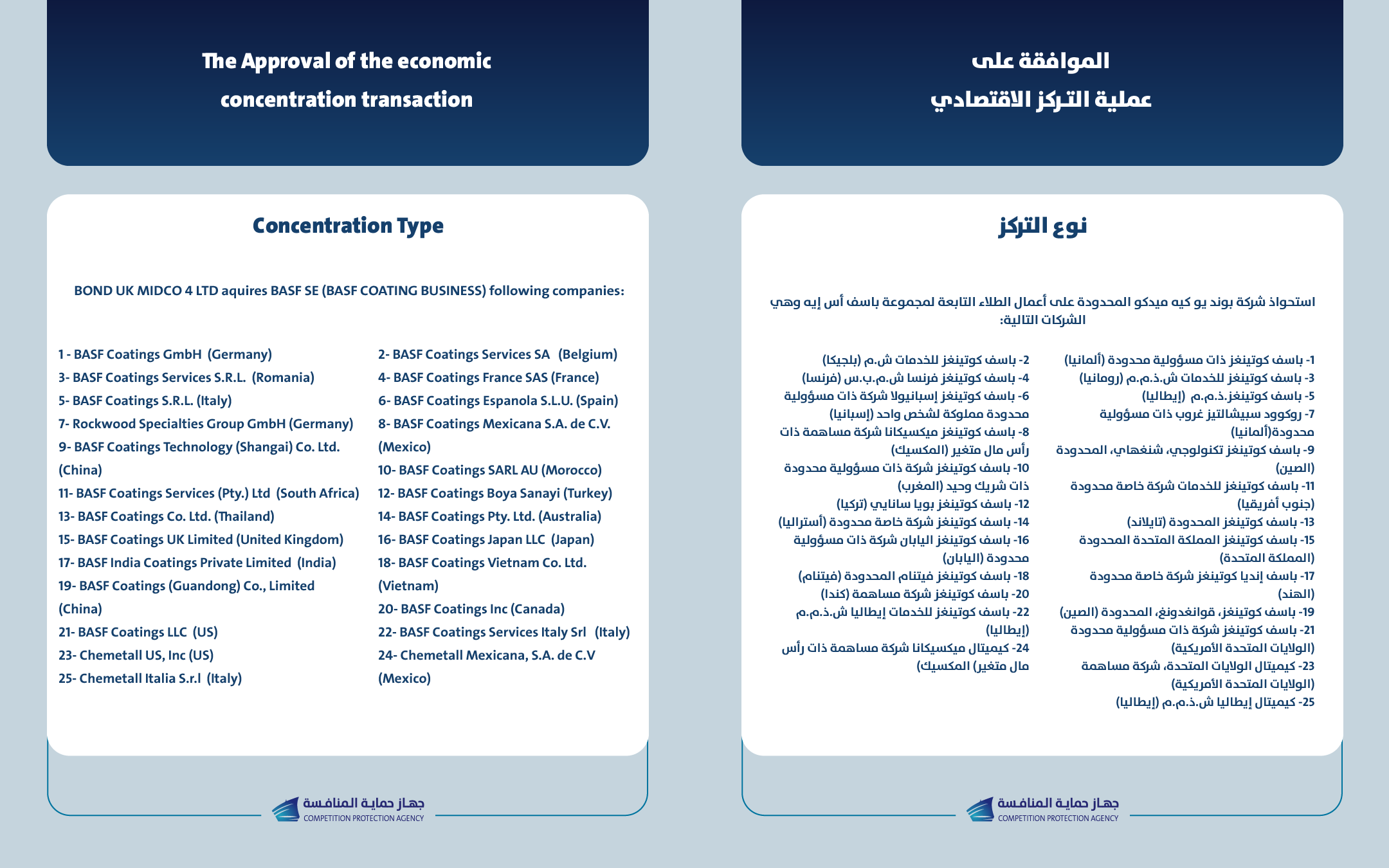 الموافقة على عملية التركز الاقتصادي بين شركة بوند يو كيه ميدكو المحدودة واعمال الطلاء للشر