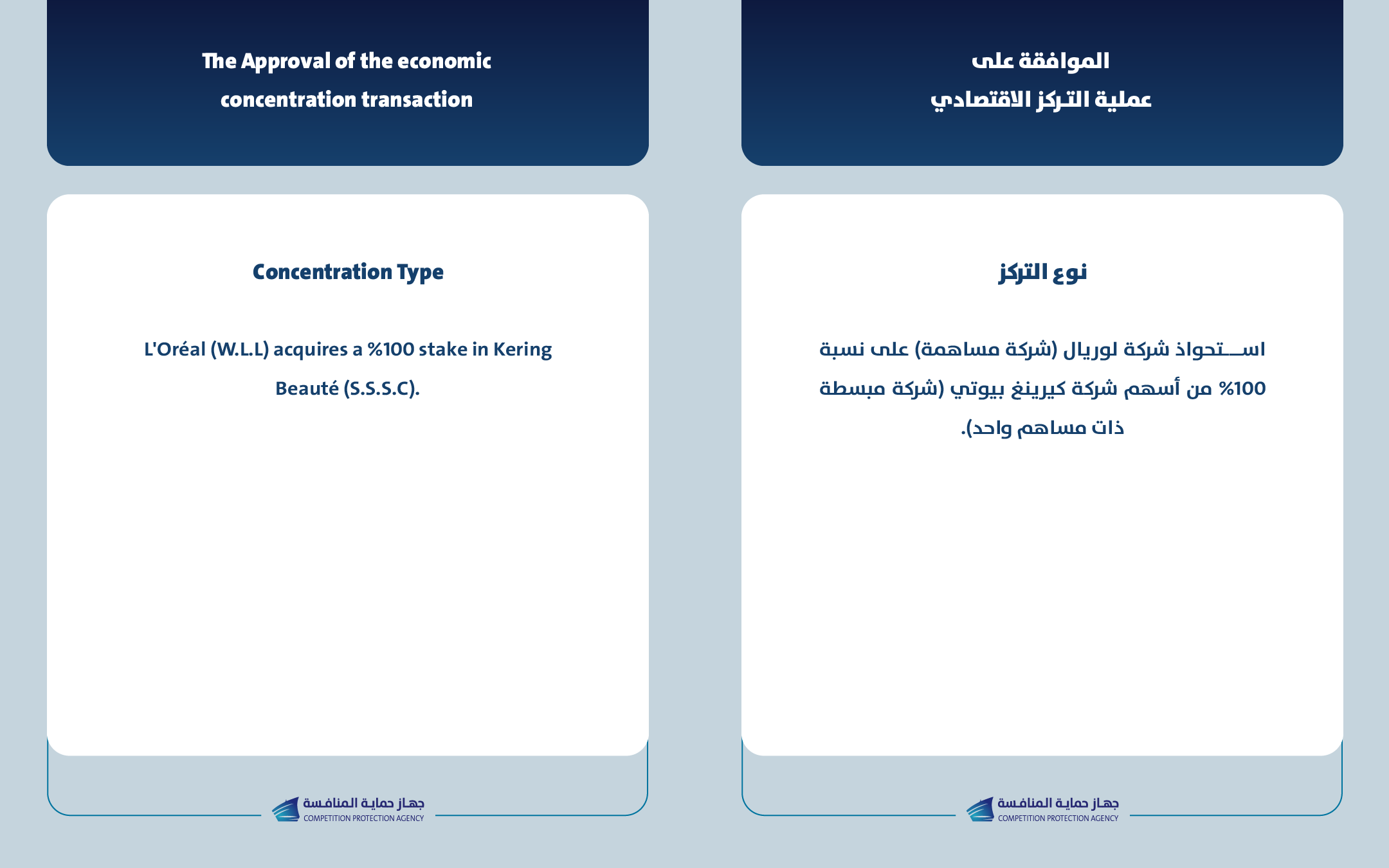 الموافقة على عملية التركز الاقتصادي بين شركة لوريال (شركة مساهمة) فرنسا وشركة كيرينغ بيوتي
