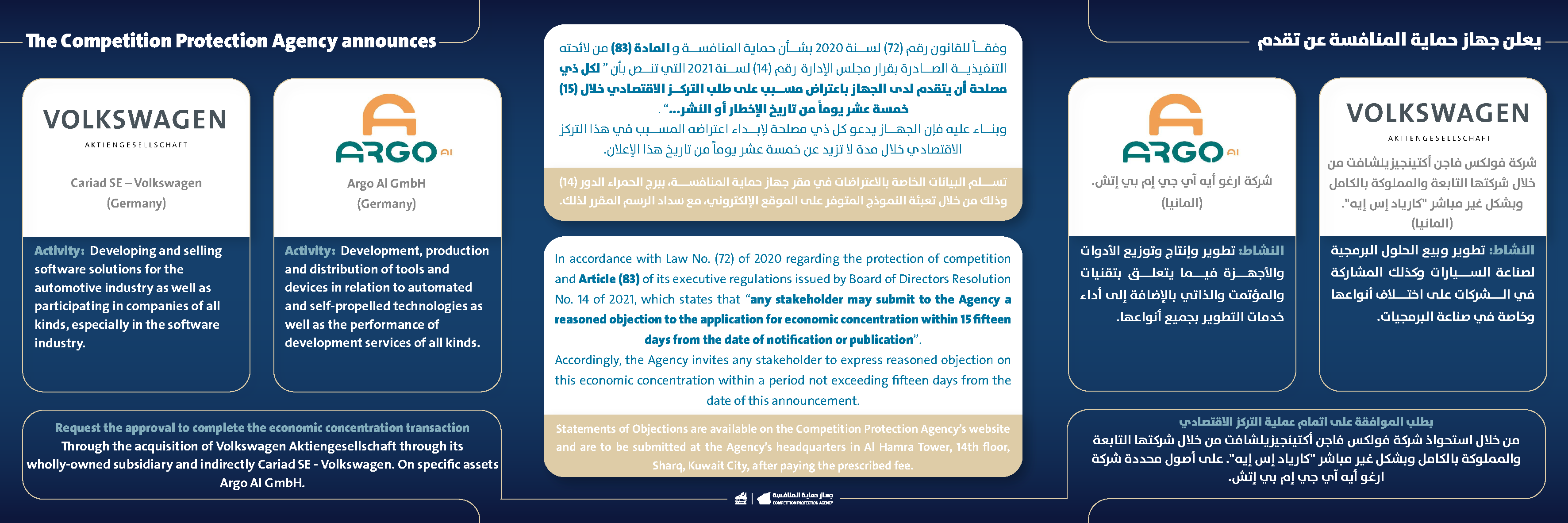 يعلن جهاز حماية المنافسة عن تقدم شركة فولكس فاجن أكتينجيزيلشافت من خلال شركتها التابعة وال