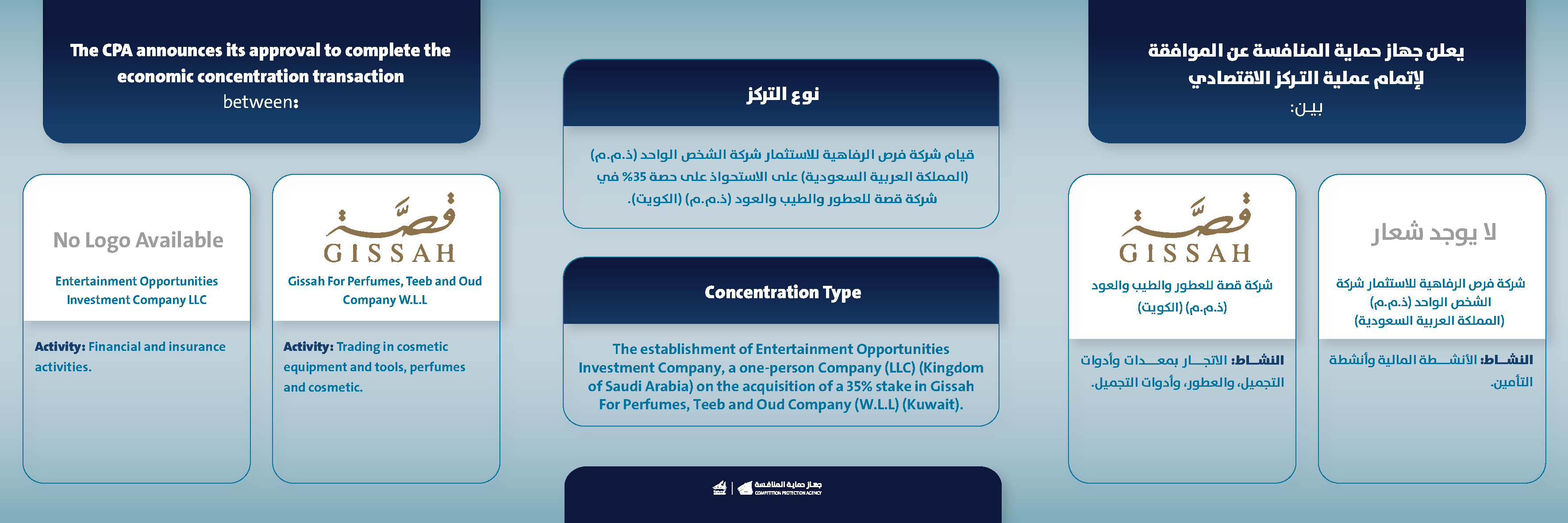 يعلن جهاز حماية المنافسة عن الموافقة لإتمام عملية التركز الاقتصادي بين شركة فرص الرفاهية ل