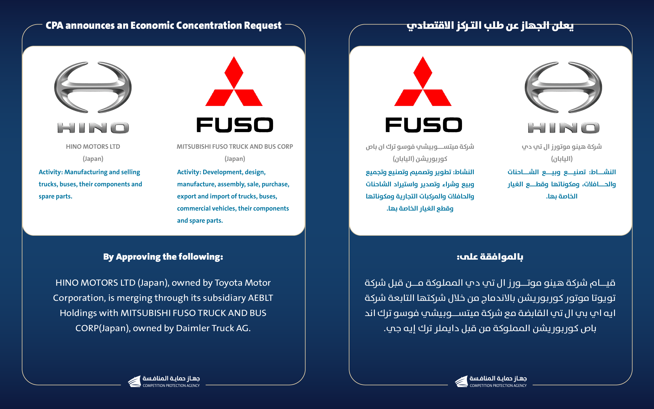 تقدم شركة هينو موتورز ال تي دي (اليابان) وشركة ميتسوبيشي فوسو تراك ان باص كوربوريشن(اليابا