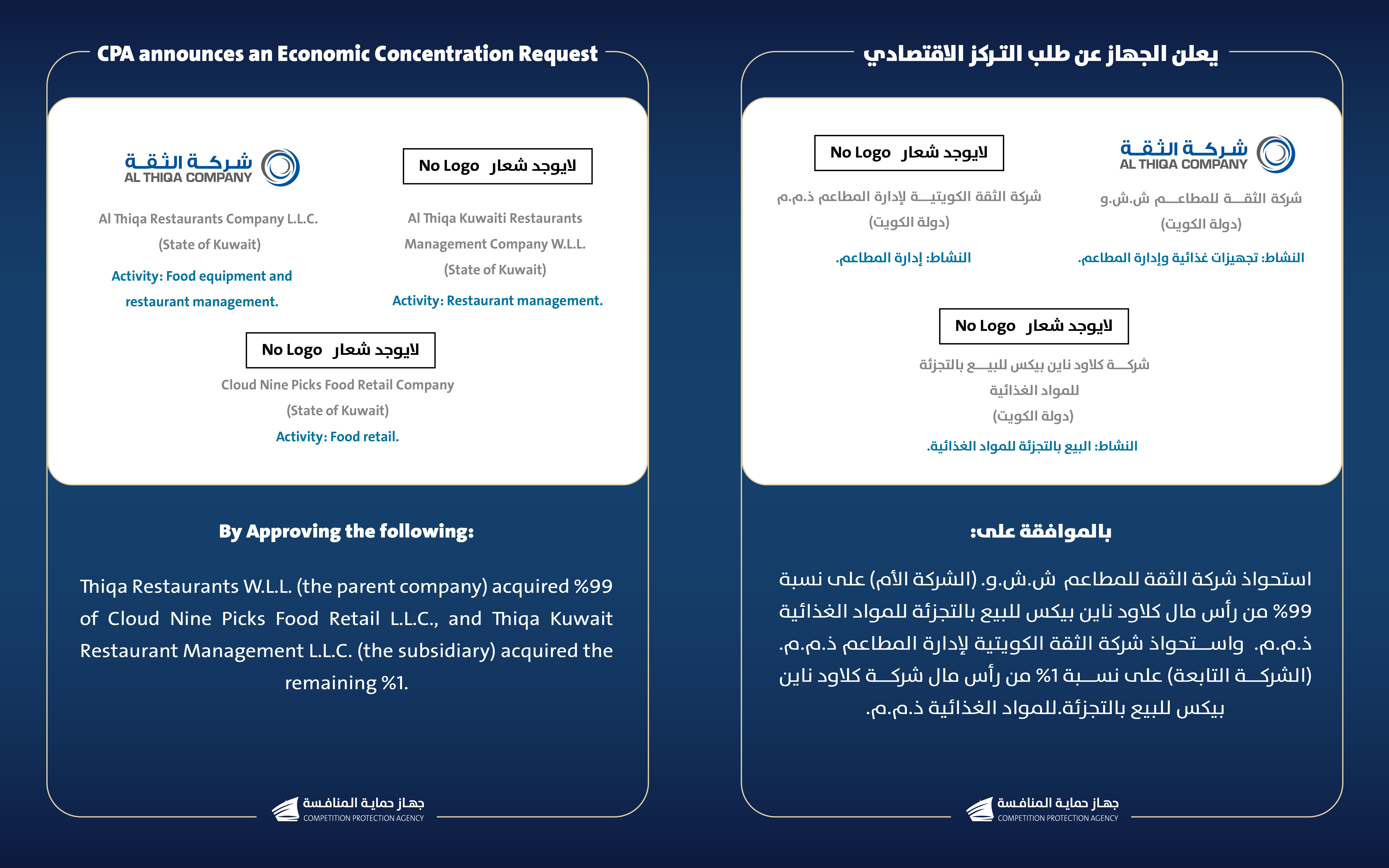 تقدم شركة الثقة للمطاعم ش.ش.و (دولة الكويت) وشركة الثقة الكويتية لإدارة المطاعم ذ.م.م (دو