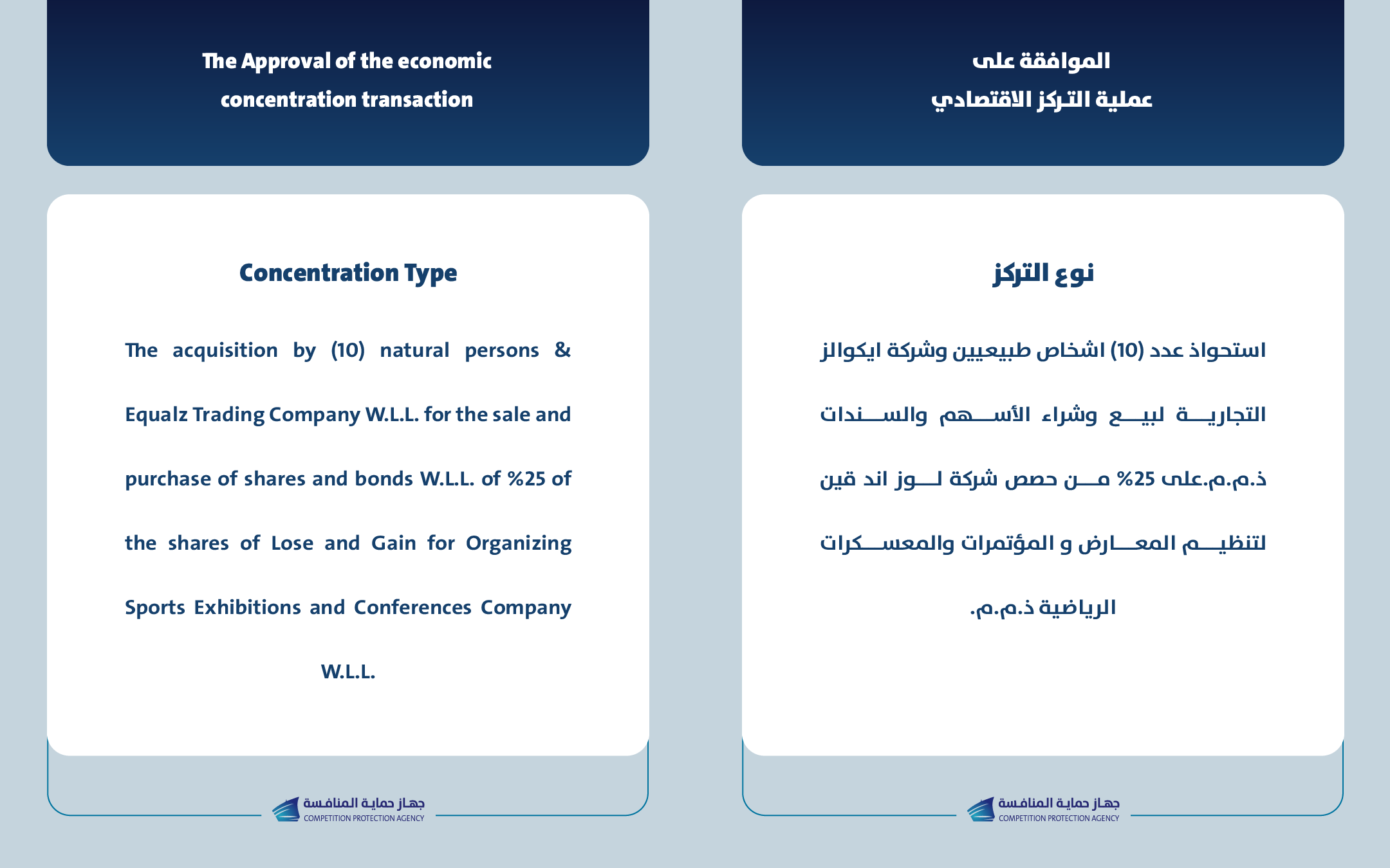 الموافقة على عملية التركز الاقتصادي بين (١٠) اشخاص طبيعيين وشركة ايكوالز التحارية لبيع وشر