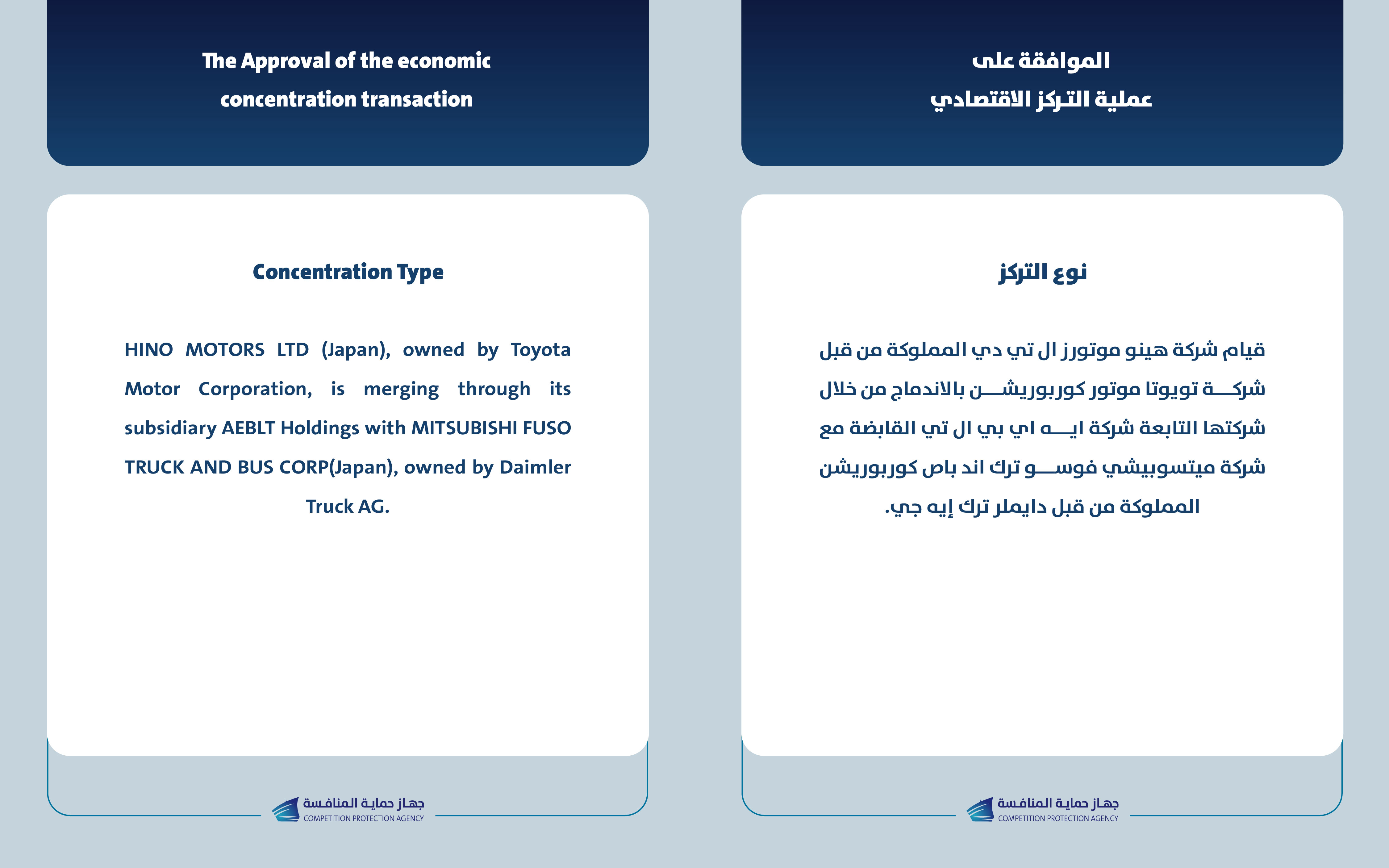 يعلن جهاز حماية المنافسة عن الموافقة لإتمام عملية التركز الاقتصادي بين شركة هينو موتورز ال