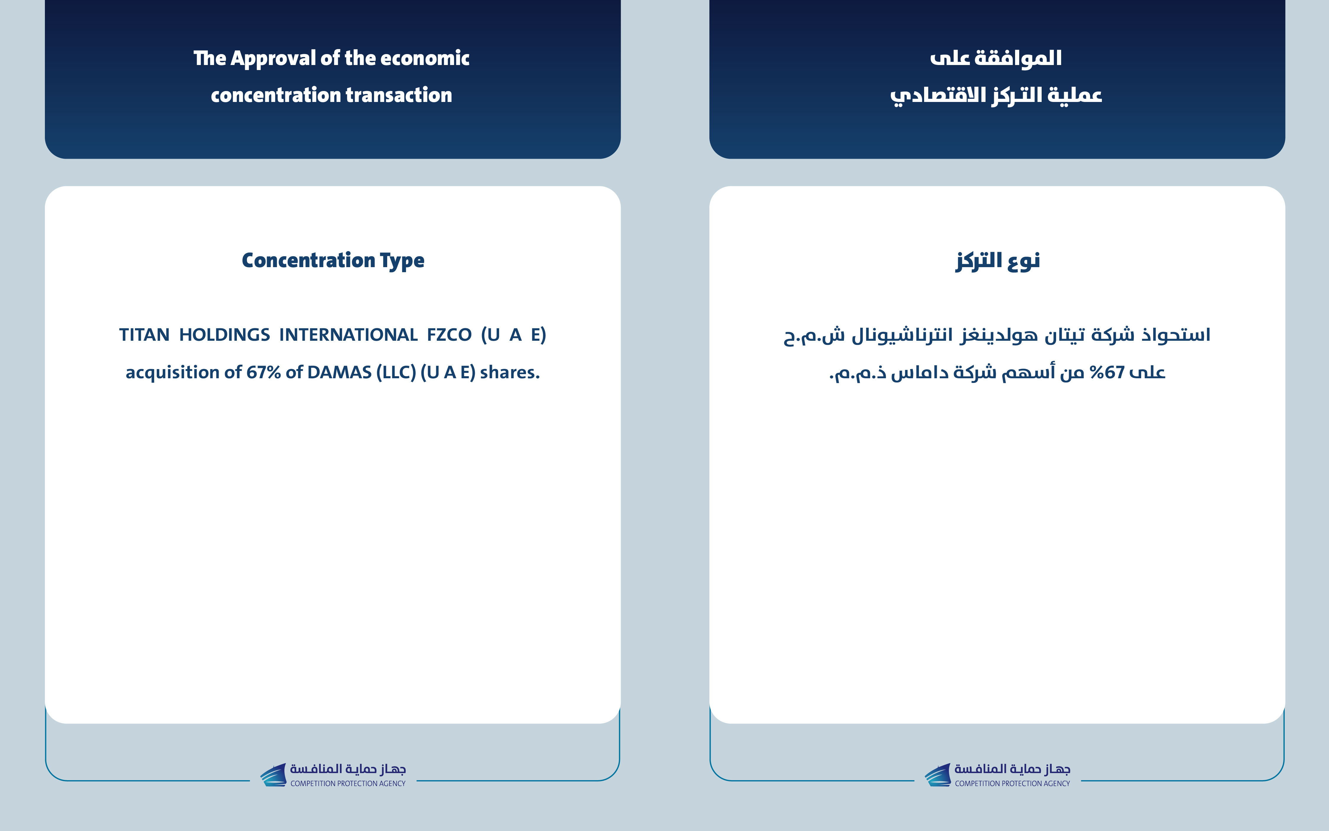 يعلن جهاز حماية المنافسة عن الموافقة لإتمام عملية التركز الاقتصادي بين شركة تيتان هولدينغز