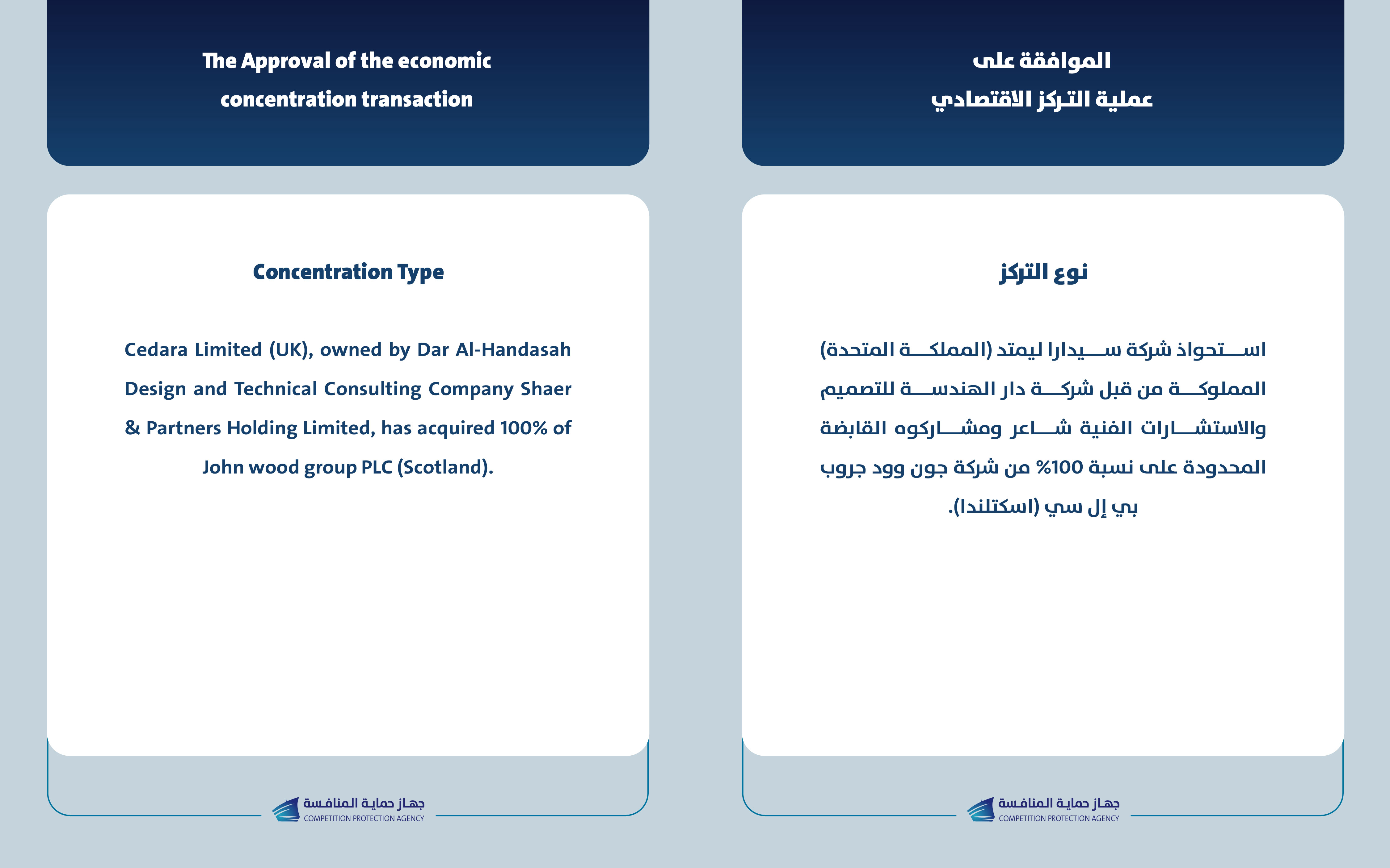 يعلن جهاز حماية المنافسة عن الموافقة لإتمام عملية التركز الاقتصادي بين شركة سيدارا ليمتد (