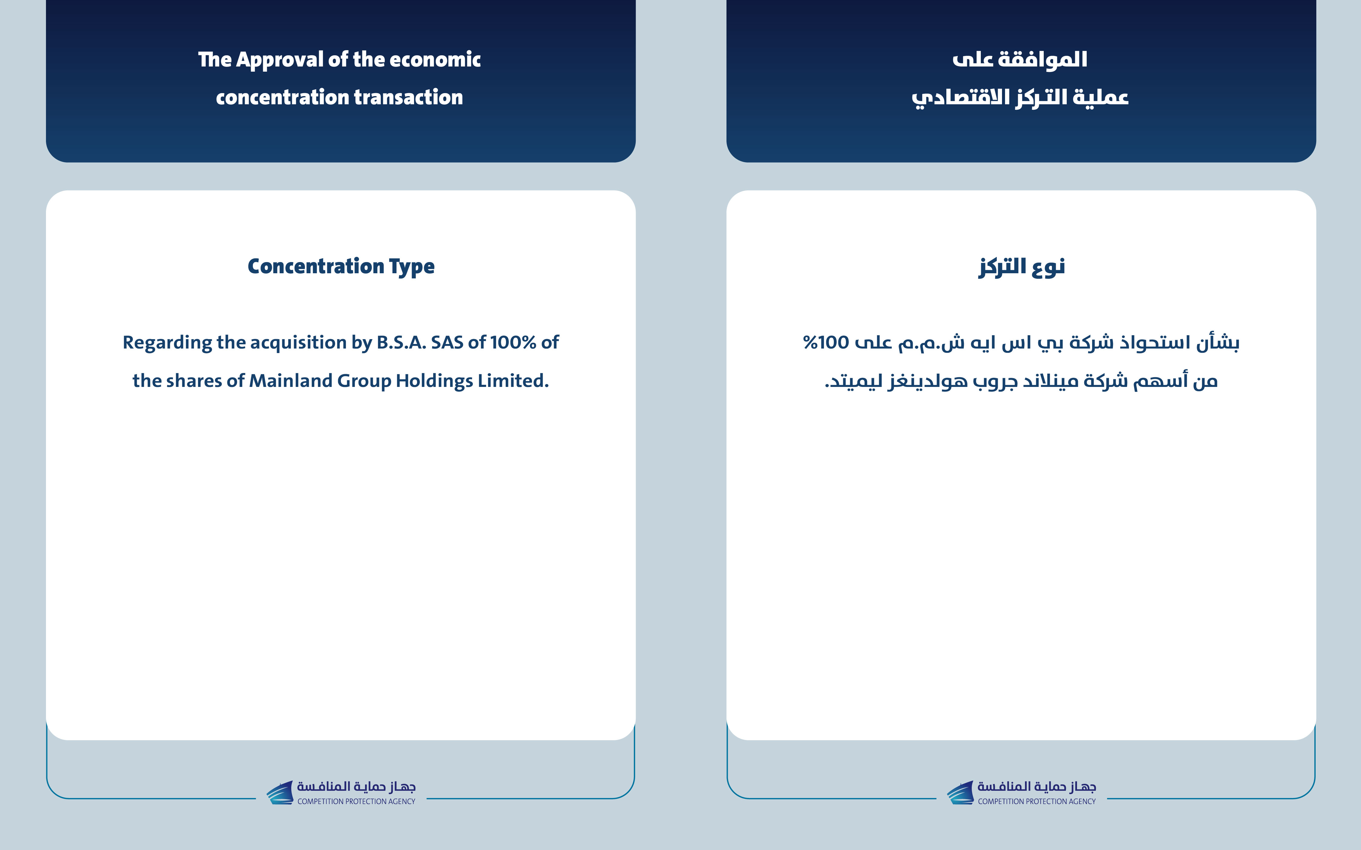 يعلن جهاز حماية المنافسة عن الموافقة لإتمام عملية التركز الاقتصادي بين شركة بي اس ايه ش.م.