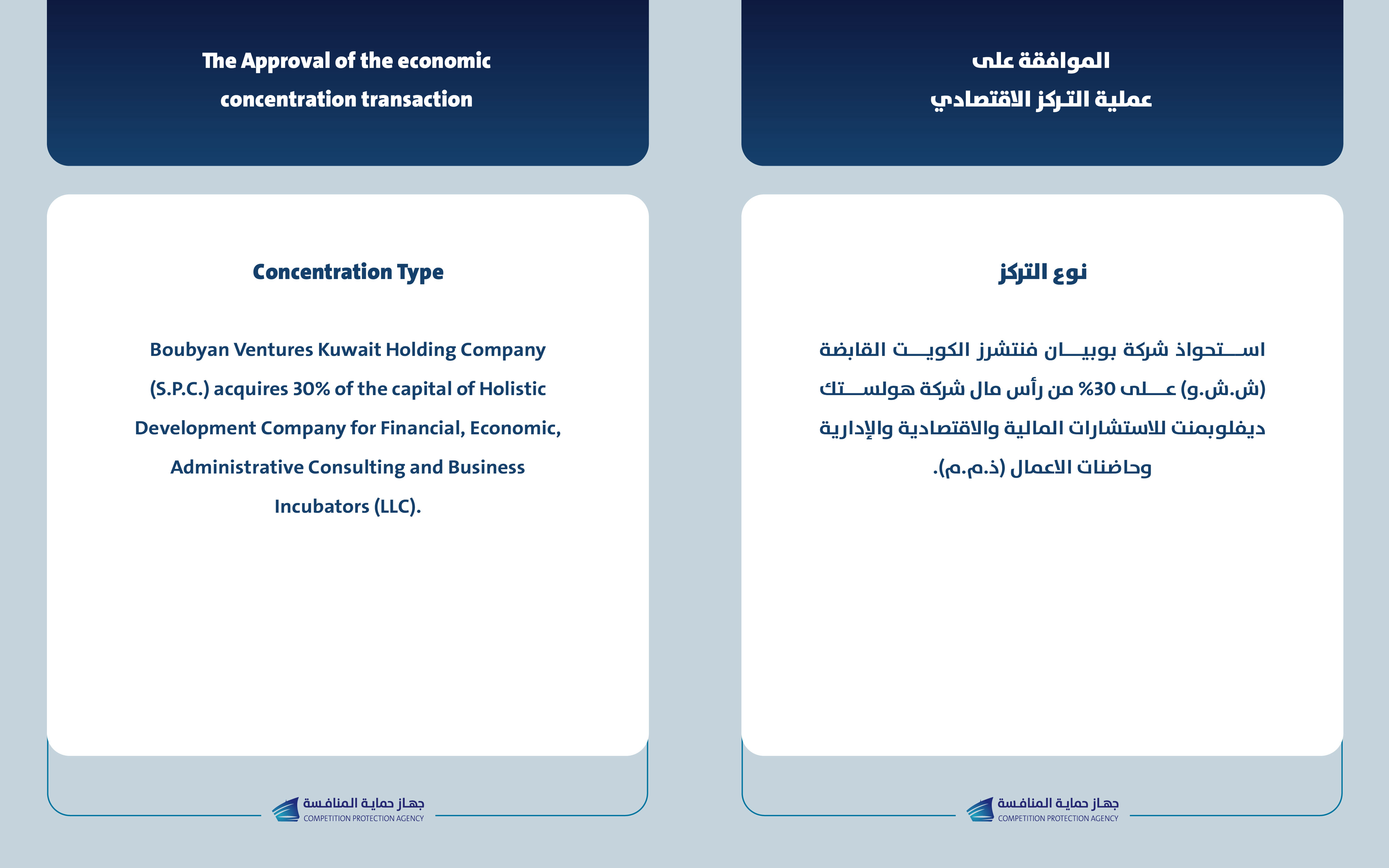 يعلن جهاز حماية المنافسة عن الموافقة لإتمام عملية التركز الاقتصادي بين شركة بوبيان فنتشرز