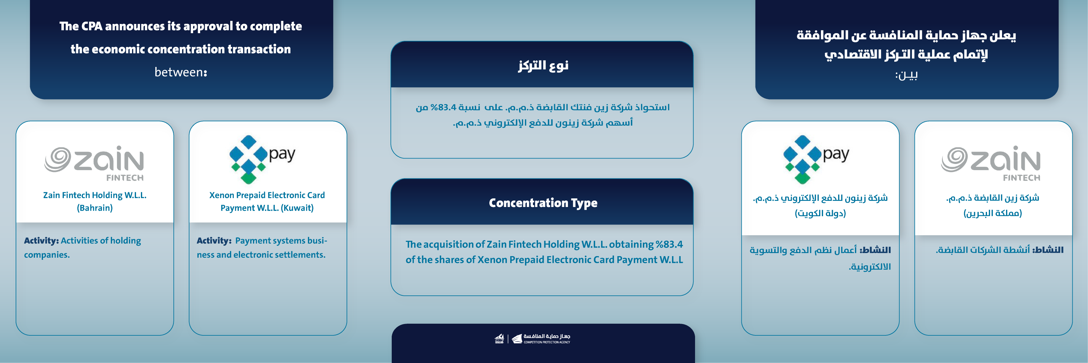 يعلن جهاز حماية المنافسة على الموافقة لإتمام عملية التركز الاقتصادي بين شركة زين القابضة ذ