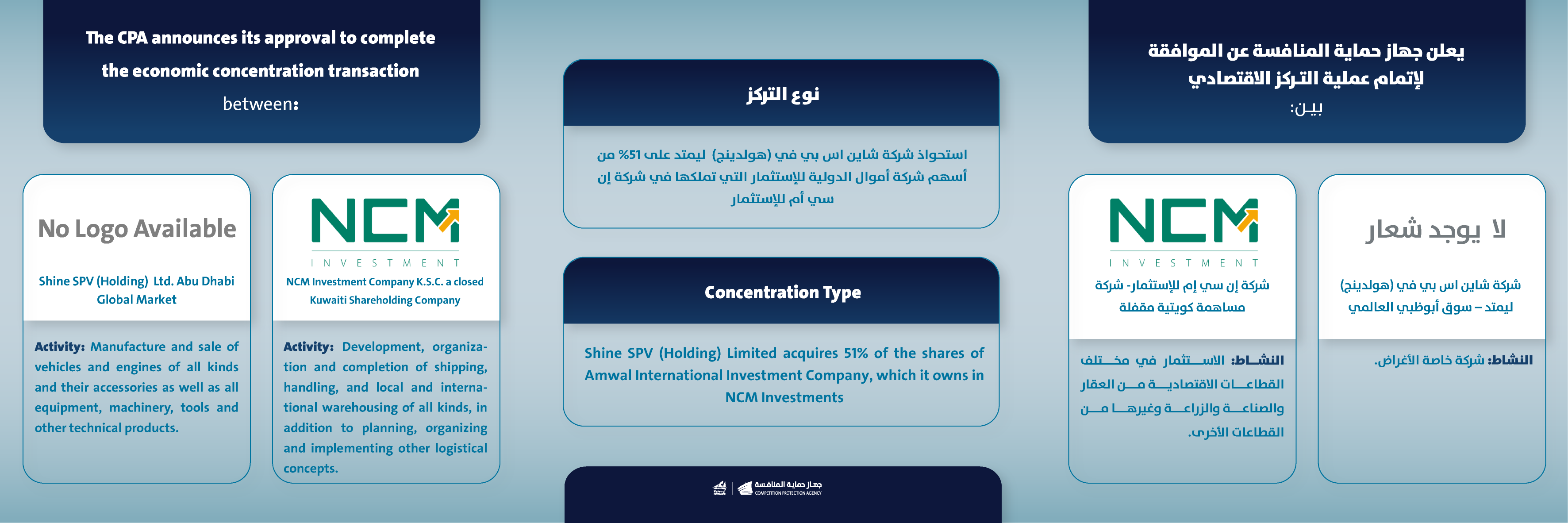 يعلن جهاز حماية المنافسة على الموافقة لإتمام عملية التركز الاقتصادي بين شركة شاين اس بي في