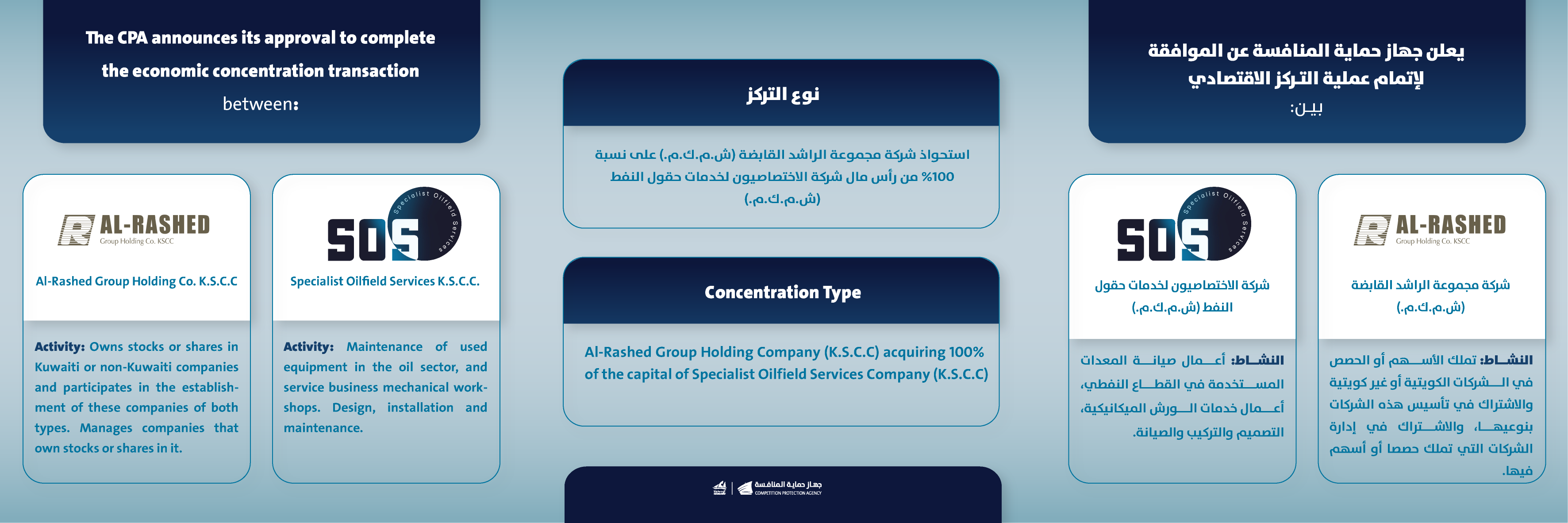 يعلن جهاز حماية المنافسة على الموافقة لإتمام عملية التركز الاقتصادي بين شركة مجموعة الراشد