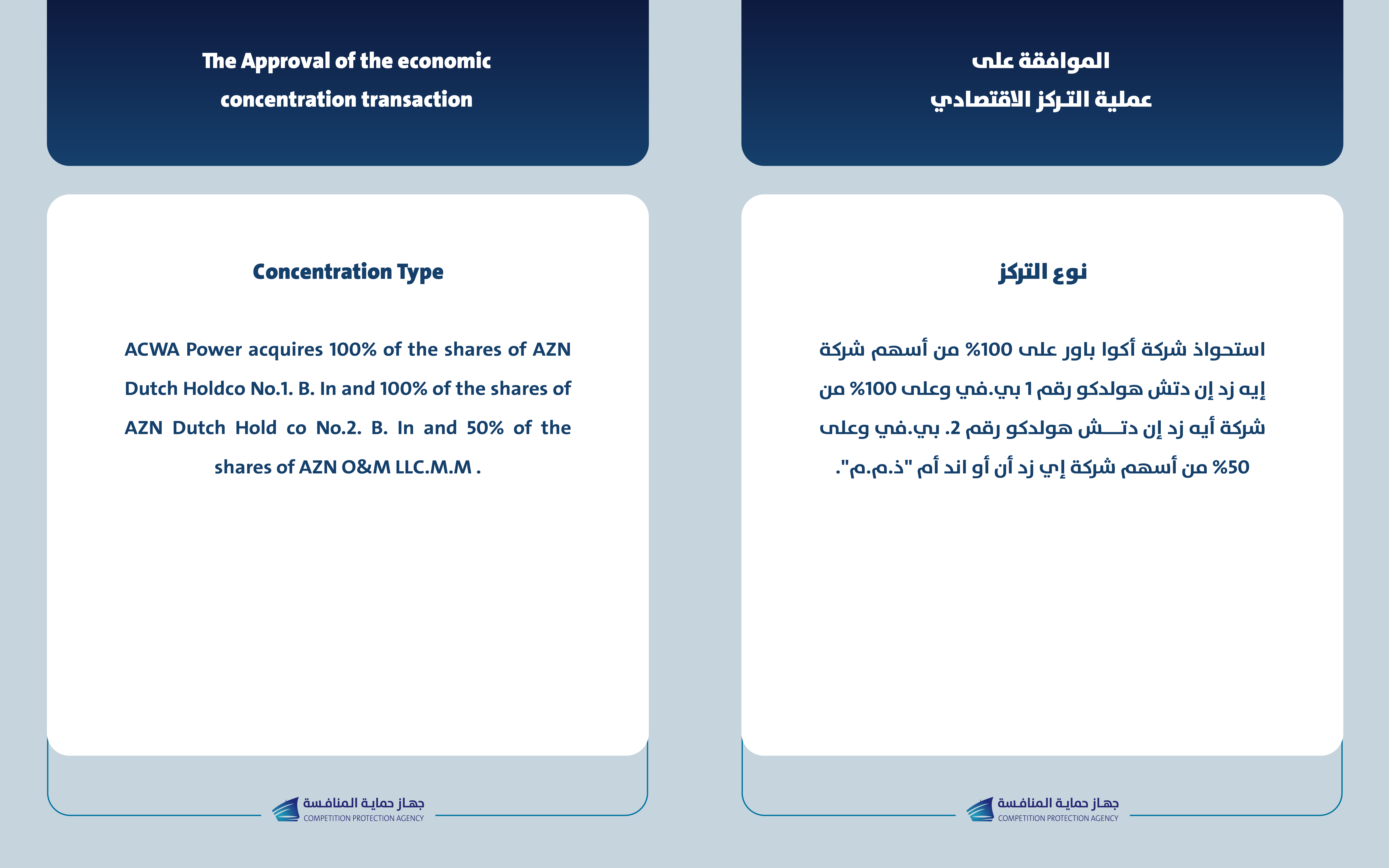 الموافقة على عملية التركز الاقتصادي بين أكوا باور وشركة إيه زد إن دتش هولدكو رقم 1.بي.في و