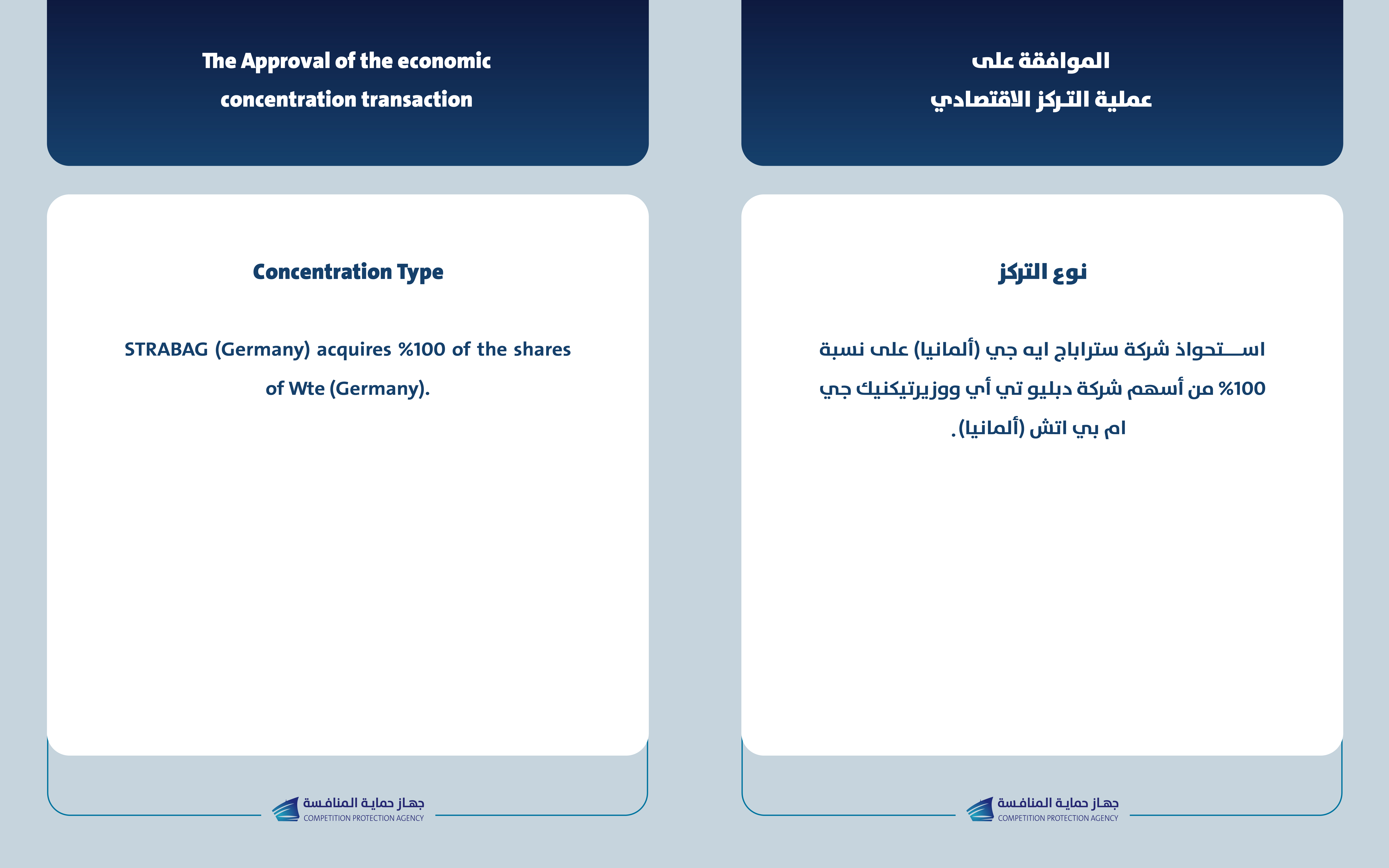 الموافقة على عملية التركز الاقتصادي بين شركة ستراباج ايه جي (ألمانيا) وشركة دبليو تي أي وو