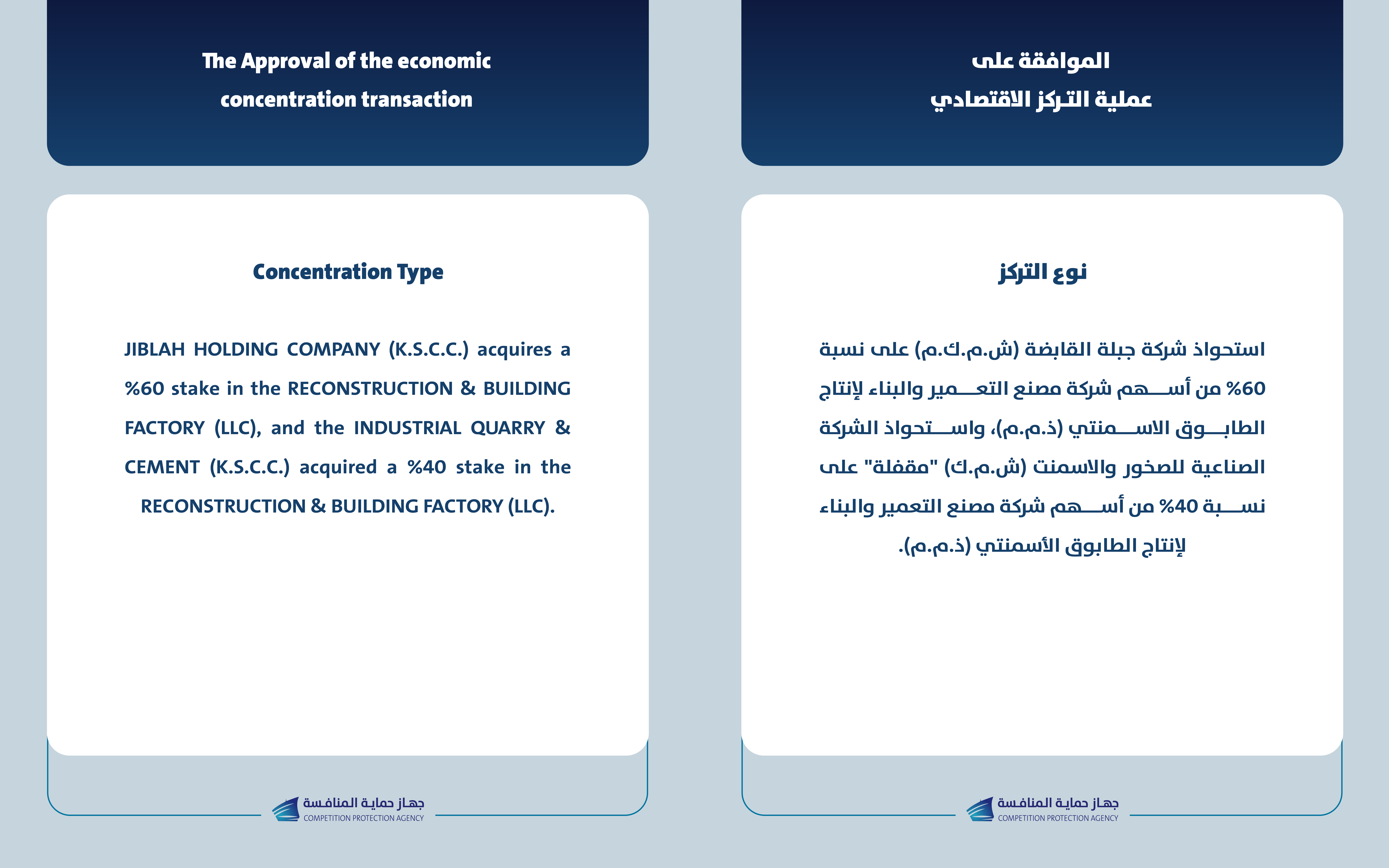 الموافقة على عملية التركز الاقتصادي بين شركة جبلة القابضة (ش.م.ك.م) والشركة الصناعية للصخو