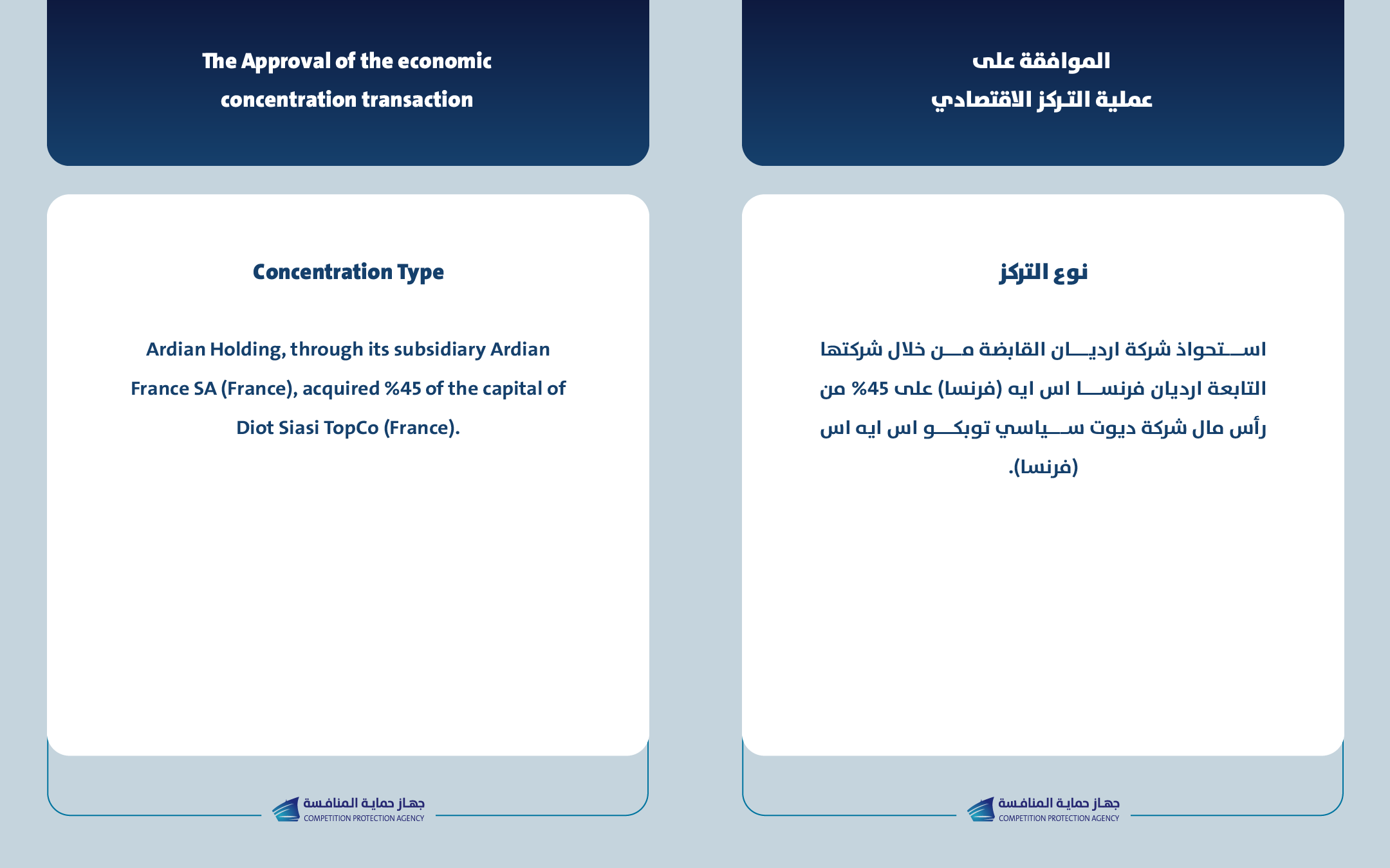 الموافقة على عملية التركز الاقتصادي بين شركة ارديان القابضة من خلال شركتها التابعة ارديان