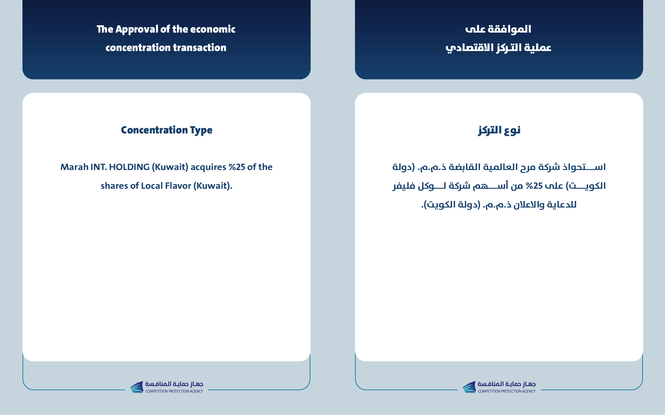الموافقة على عملية التركز الاقتصادي بين شركة مرح العالمية القابضة "ذ.م.م" (دولة الكويت) وش