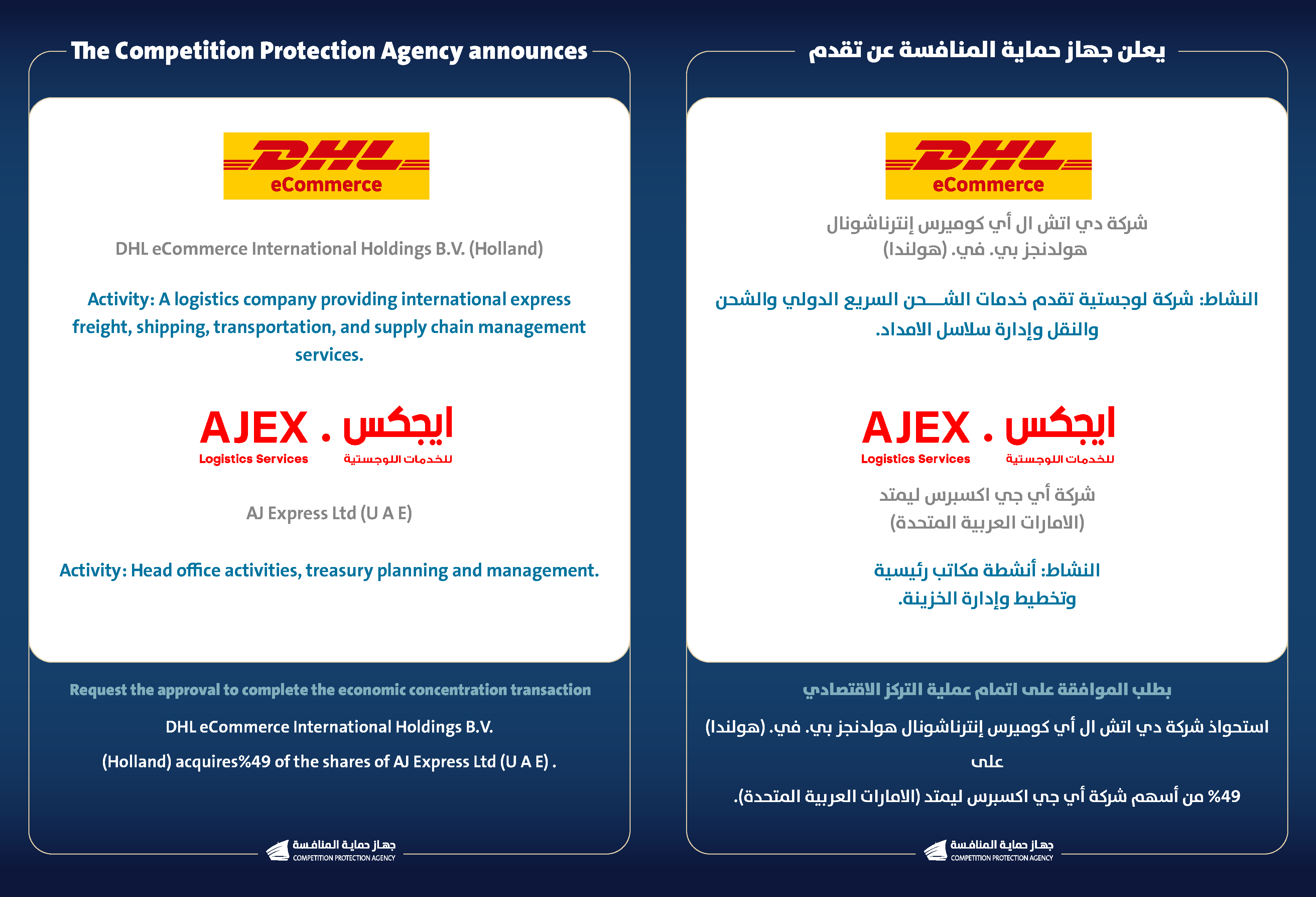 يعلن جهاز حماية المنافسة عن تقدم شركة دي اتش ال أي كوميرس انترناشونال هولدنجر بي. في (هولن
