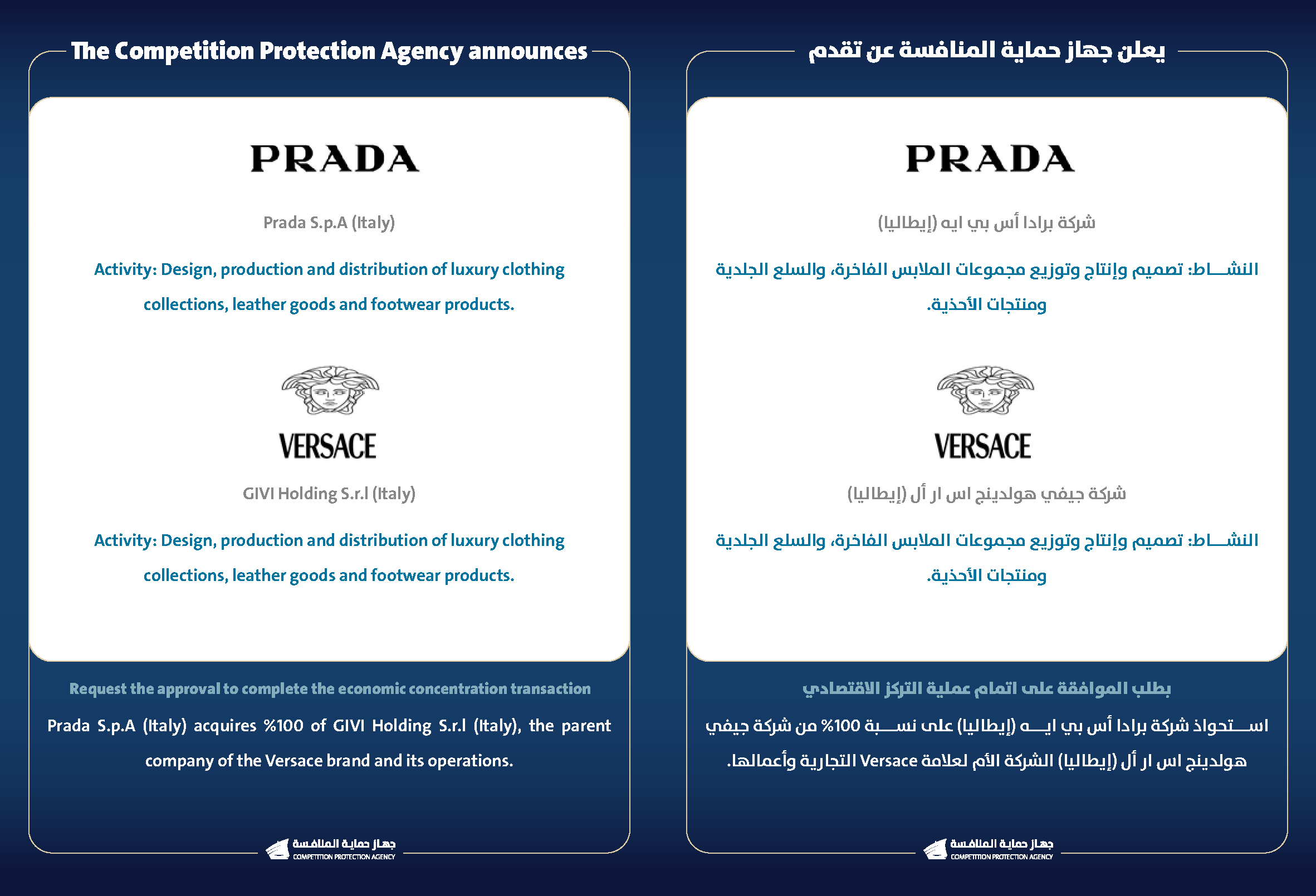 تقدم شركة برادا أس بي ايه (إيطاليا) وشركة جيفي هولدينج اس ار أل (إيطاليا) بطلب الموافقة عل