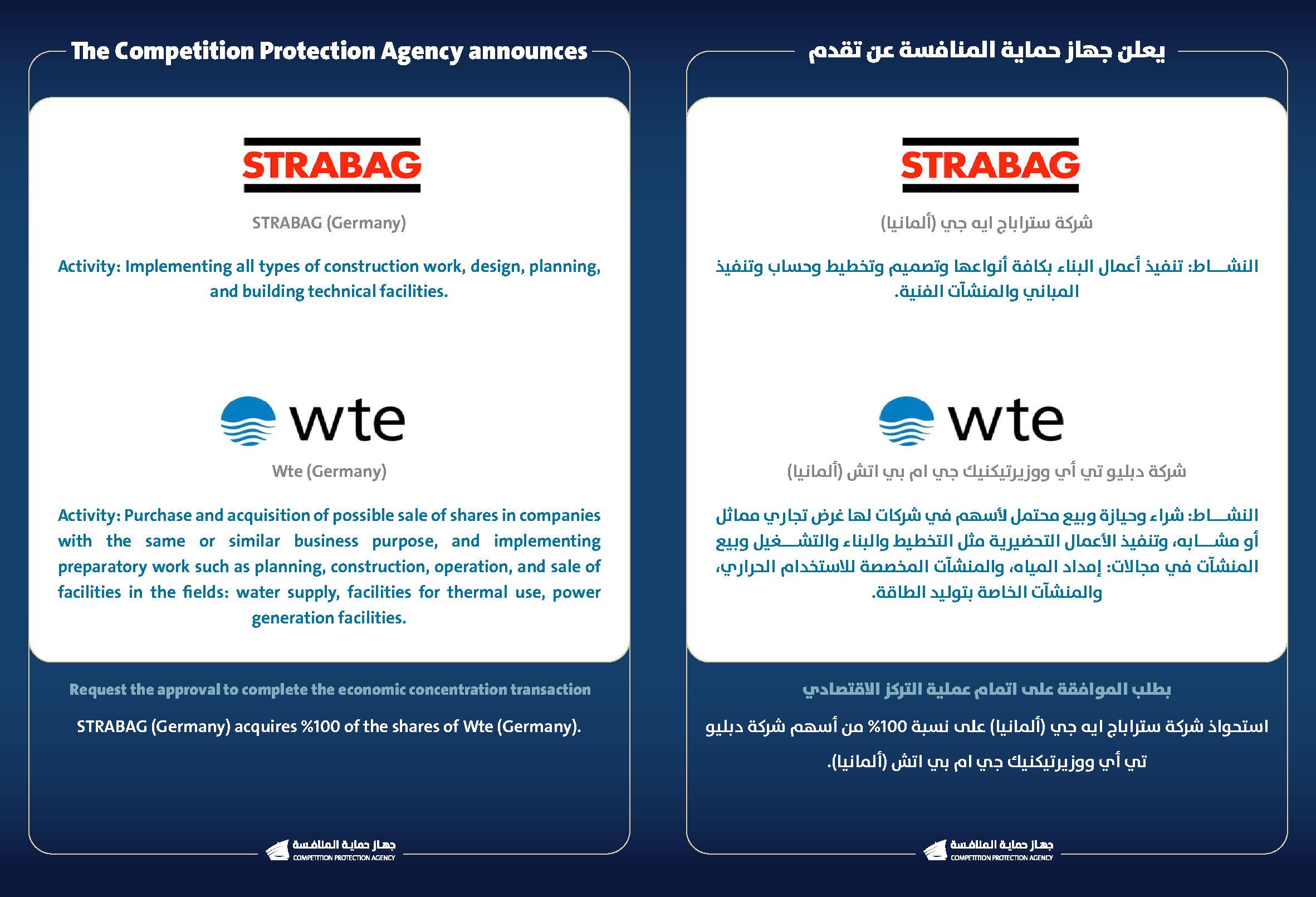 تقدم شركة ستراباج ايه جي (ألمانيا) وشركة دبليو تي أي ووزيرتيكنيك جي ام بي اتش (ألمانيا) بط