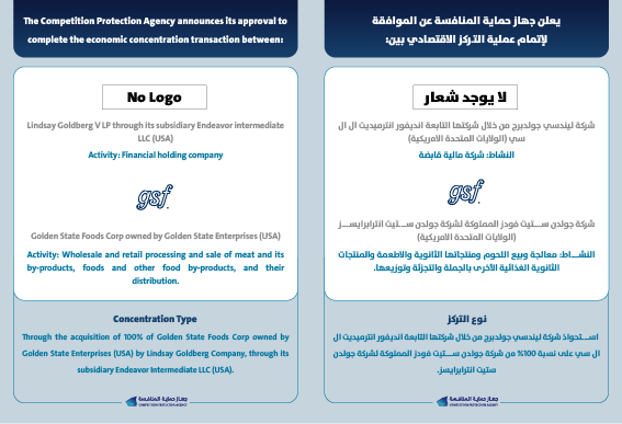 يعلن جهاز حماية المنافسة عن الموافقة لإتمام عملية التركز الاقتصادي بين شركة ليندسي جولدبرج