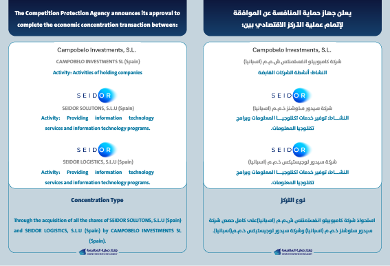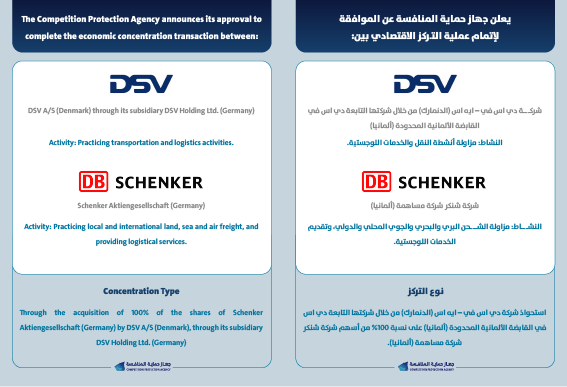 يعلن جهاز حماية المنافسة عن الموافقة لإتمام عملية التركز الاقتصادي بين شركة دي اس في – اي