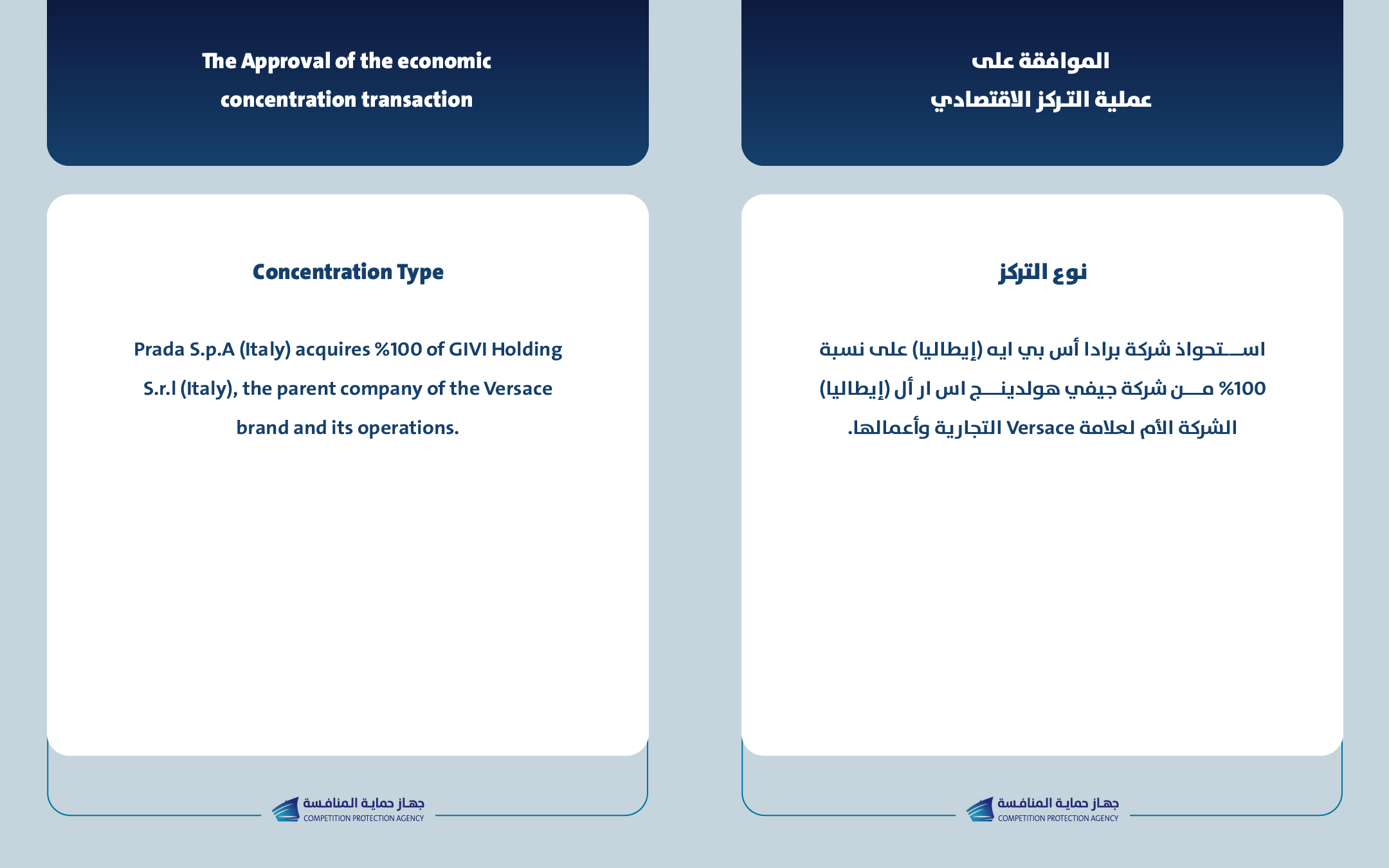 الموافقة على عملية التركز الاقتصادي بين برادا أس بي ايه (إيطاليا) و شركة جيفي هولدينج اس ار أل (إيطاليا) .