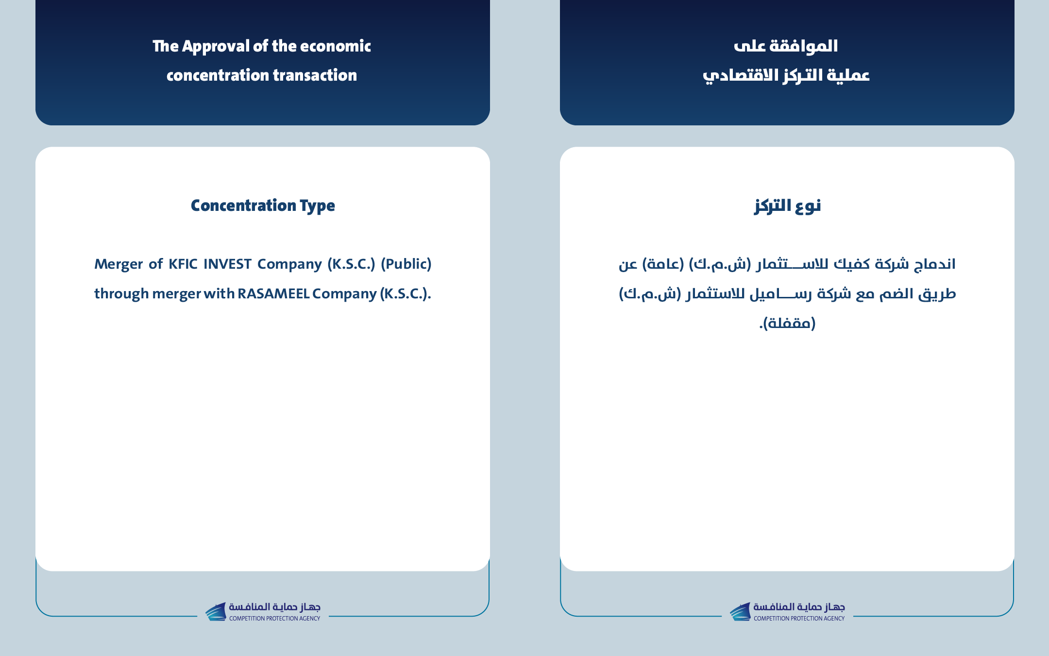 الموافقة على عملية التركز الاقتصادي بين شركة كفيك للاستثمار (ش.م.ك)(عامة) وشركة رساميل للاستثمار(ش.م.ك) (مقفلة).