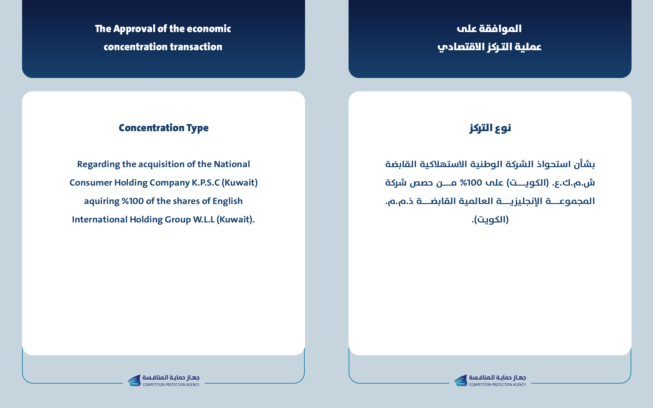 الموافقة على عملية التركز الاقتصادي بين الشركة الوطنية الاستهلاكية القابضة ش.م.ك.ع. (الكويت) وشركة المجموعة الإنجليزية العالمية القابضة ذ.م.م. (الكويت).